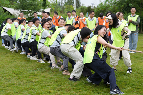 拔河绳在掌心灼烧出经纬,步伐与大地达成契约。每个后倾的45度角里,折叠着二十载同心齐力的默契,伴随喉间迸发的号子,步履划一。